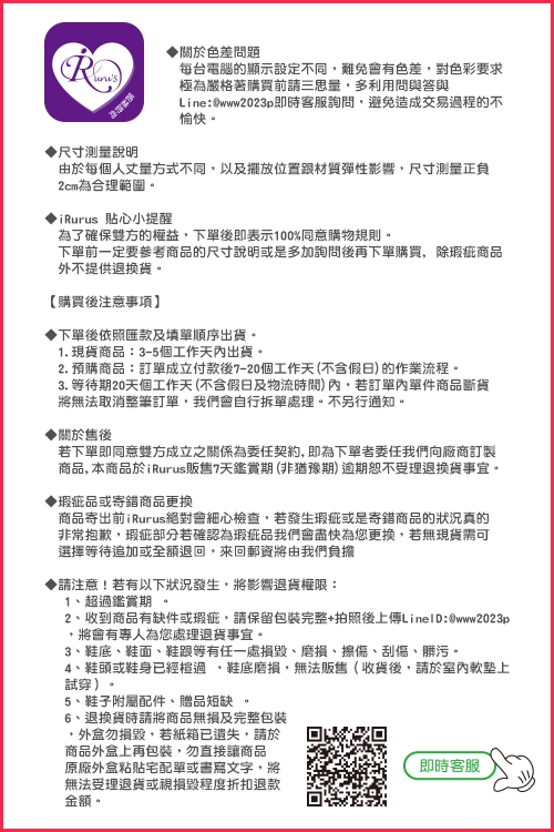 ※ 本公司依法提供鑑賞期十天、請注意鑑賞期僅供鑑賞非試用期,故不提供試用,商品標籤一經剪除視同鑑賞滿意,不再接受退貨。